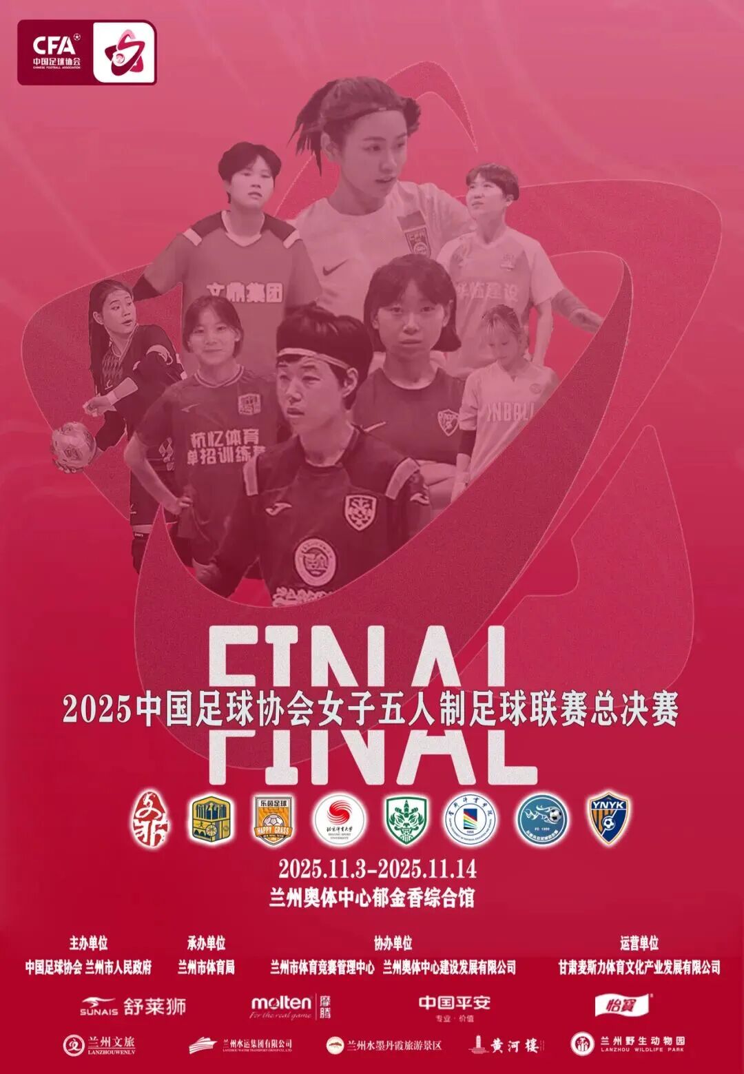2025中國足球協會女子五人制足球聯賽(簡稱“2025女五聯賽”)總決賽于11月5日至14日在蘭州奧體中心郁金香綜合館舉辦。這也是女五聯賽總決賽第三年落戶蘭州。